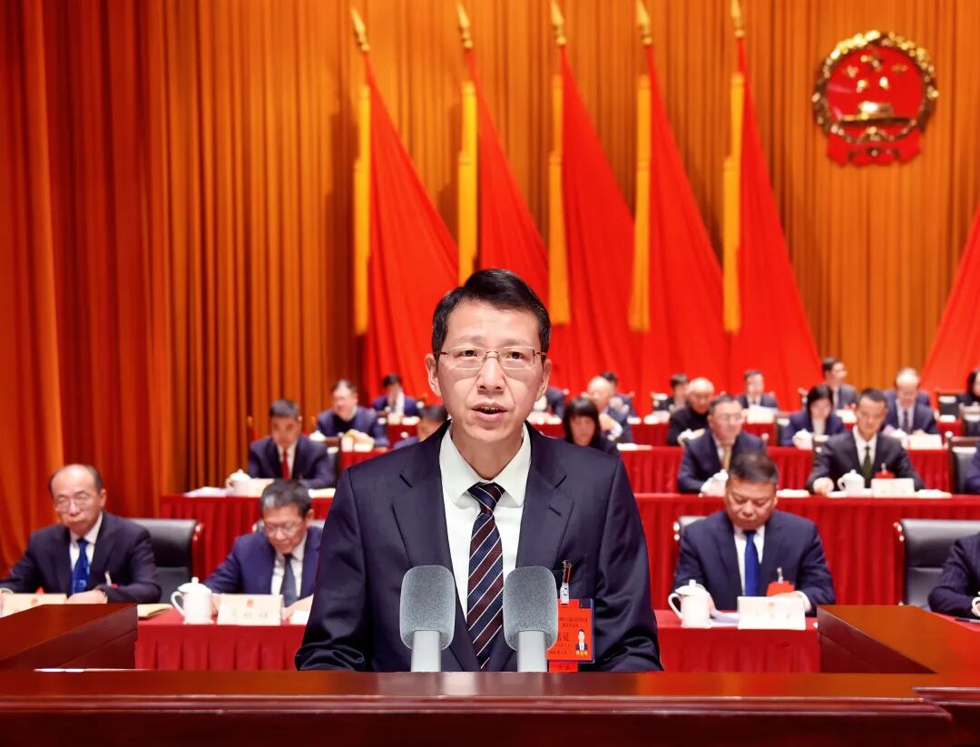 邵剑峰代表兴化市人民政府向大会作工作报告。报告分“‘十四五’发展和2025年工作回顾”“‘十五五’发展目标任务”“2026年工作任务”三个部分。