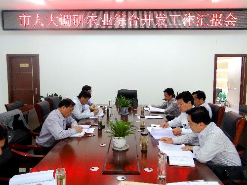 5月5日下午,市人大常委会副主任刘云山带队调研全市农业综合开发工作,市农开局领导班子全体成员、财政局有关人员陪同调研。调研组一行首先实地视察了沈镇2013年度农业综合开发高标准农田建设项目和2014年度市级标准粮田改造工程项目以及竹泓镇2014年度市级标准良田改造工程项目,详细了解项目建设、建后管护、效益发挥等方面情况。随后,汇报会上,调研组听取了市财政局农发资金管理、农开局关于全市农业综合开发和标准粮田改造工程项目建设情况的汇报,并就项目建设有关问题与与会者进行了交流、探讨。调研组对我市农业综合开发工作取得的成绩给予充分肯定,同时就进一步做好全市农业综合开发和市级标准粮田改造工程项目工作提出四点建议:一是加强项目上争力度;二是加大市乡两级财政投入力度;三是加大项目实施力度;四是加大工程项目监管力度。