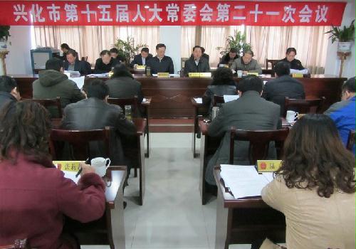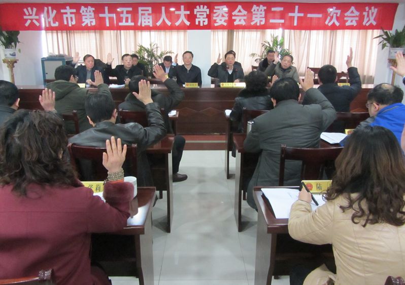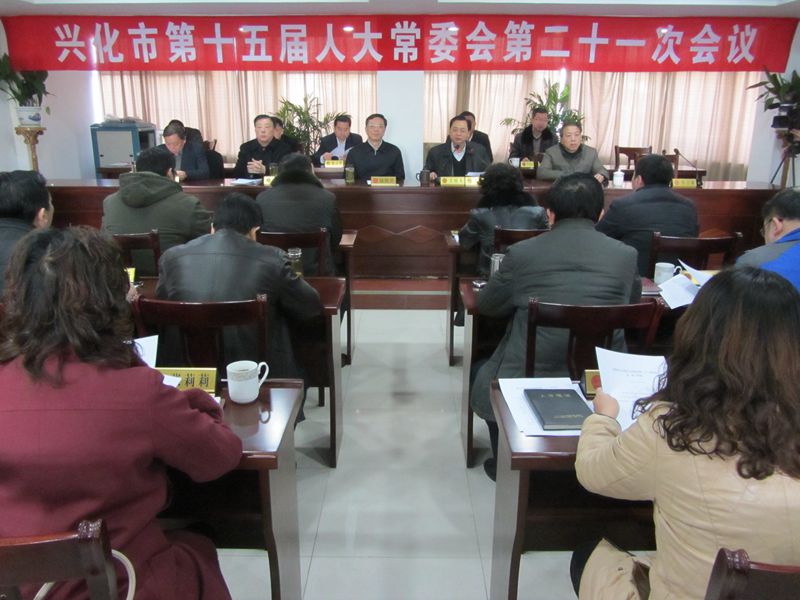 2月5日上午,市十五届人大常委会召开第二十一次会议,听取了市人大办公室茅康勇主任所作兴化市人大常委会2015年工作要点(草案)的报告,听取了市人大人事工委顾小兵主任所作《兴化市人大常委会关于进一步提高代表建议办成率的意见》(草案)的报告。在分组审议的基础上,大会表决通过兴化市人大常委会2015年工作要点(草案),表决通过《兴化市人大常委会关于进一步提高代表建议办成率的意见》(草案)。
