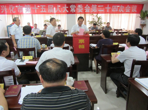 8月25日上午,市十五届人大常委会召开第二十四次会议,听取和审议市政府关于2015年上半年国民经济、社会发展计划和财政预算执行情况的报告;听取和审议市政府关于《食品安全法》贯彻实施情况的汇报;听取市政府关于《江苏省保护和促进台湾同胞投资条例》贯彻执行情况的汇报;听取泰州市人大代表报告履职情况;听取有关人事任免议案。