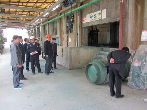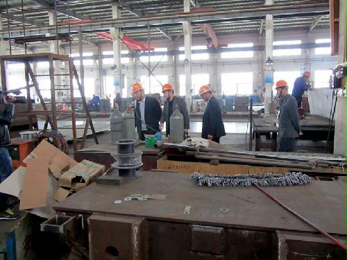 执法检查组检查江苏新宏大集团生产车间。