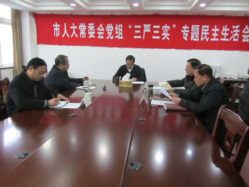 12月23日上午,市人大常委会党组召开“三严三实”专题民主生活会,围绕“三严三实”要求,深入查找党组班子及成员存在的问题和原因,明确努力方向和改进措施。市人大常委会党组书记、常务副主任卞正祥主持会议。