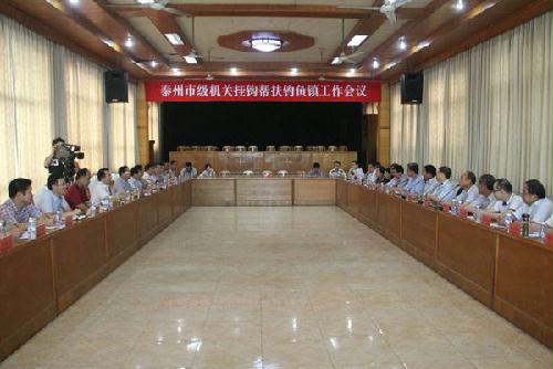 7月1日下午,泰州市人大常委会党组书记、副主任高纪明带领泰州9个市级机关部门负责人来到我市钓鱼镇,共商精准扶贫、精准脱贫之策。