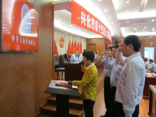 在听取了拟任职人员的《拟任职发言》后,会议以无记名投票的方式,对有关人员任职作了票决。根据表决票结果,赞成票数均超过应到会组成人员的半数。根据《地方组织法》有关规定,市人大常委会决定:任命刘汉梅同志为兴化市人民政府副市长,任命刘秀武同志为兴化市人力资源和社会保障局局长,任命李玉东同志为兴化市城市管理局局长,任命黄满盛同志为兴化市民政局局长。