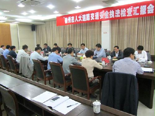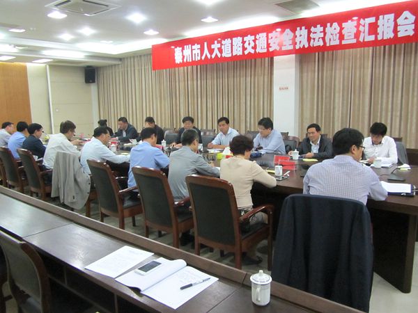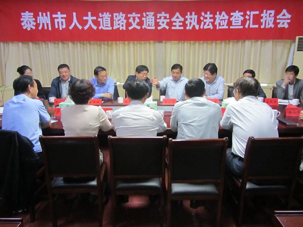5月27日下午,泰州市人大常委会道路交通安全执法检查第四小组在戴胜利副主任的带领下,实地察看了我市陈堡镇陈蔡公路、实验小学、牌楼中路、客运中心、华通汽运公司,听取了兴化市政府及公安、交通、住建等职能部门关于道路交通安全“一法一条例”贯彻实施情况的汇报,检查了相关台账资料。之后的座谈会上,部分市民、教师、校车驾驶员、运输单位和交警代表,分别结合各自身份谈了对我市交通安全状况的认识,并针对存在问题提出建议,得到执法检查组的肯定。戴胜利副主任认为,我市各级党委政府高度重视道路交通安全,做了大量卓有成效的工作,整洁、顺畅、有序的交通安全面貌焕然一新,他建议:一要继续加大贯彻实施“一法一条例”的深度、广度和力度;二要进一步制定完善本行政区域道路交通安全规划;三要进一步落实道路交通安全责任;四是各职能部门要形成齐抓共管的合力。