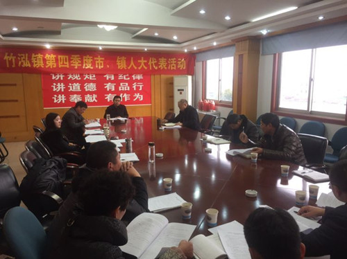 12月27日下午,竹泓镇组织市镇两级人大代表开展第四季度代表活动。活动期间,镇人大副主席熊武川领学了《江苏省乡镇人民代表大会工作条例》部分内容,邹翌同志领学了2017年中央经济工作会议主要精神,镇人大主席汤长新对市镇人大代表述职工作进行了布置。