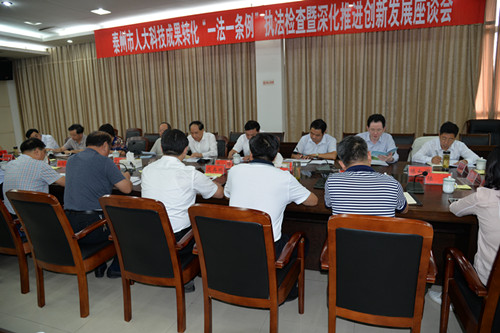 9月29日,泰州市人大常委会副主任孙耀灿带领泰州市人大常委会执法检查组来到我市陈堡镇、戴南镇和荻垛镇,对我市贯彻实施《中华人民共和国促进科技成果转化法》《江苏省促进科技成果转化条例》(以下简称“一法一条例”)及深化推进创新发展情况开展集中执法检查。