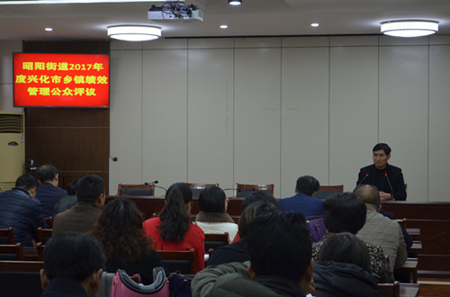 近日,昭阳街道市人大代表参与2017年度绩效管理公众评议工作,公众街道绩效管理工作满意度进行客观公正、实事求是地评议。公众评议主要采取发放填写测评表、调查表的方式进行,由代表对当地经济社会发展、党风廉政建设、干部选拔任用、公共政策等方面的满意程度进行综合评议。
