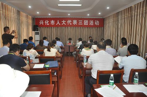 戴窑、合陈、永丰三个乡镇在市十六届人大一次会议期间属代表三团,8月4日上午,三个乡镇组织代表三团的40多名市人大代表视察了兴化兴东水厂二期扩建工程和水厂取水口,学习了《代表法》有关章节,听取了兴东水厂、市公安局交巡警大队戴窑中队和市场监督管理局戴窑分局三家单位的工作报告,并对他们的工作进行了评议。