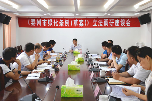 7月18日上午,市人大常委会组织召开《泰州市绿化条例(草案)》立法调研座谈会。市人大常委会副主任、市人大法制委员会主任委员翟云峰主持会议。市人大内司工委、法制办、住建局、林牧业局等单位负责人及部分市人大代表参加会议。与会人员结合兴化市及本部门实际,就《泰州市绿化条例(草案)》制定的必要性、合法性、合理性和前瞻性的要求,对相关条目进行了探讨,提出了意见建议。