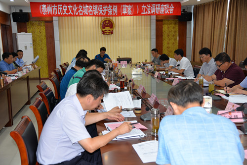 8月22日,泰州市人大常委会法工委、环资城建工委和泰州市规划局、文广新局等部门单位来我市开展《泰州市历史文化名城名镇保护条例(草案)》立法调研。