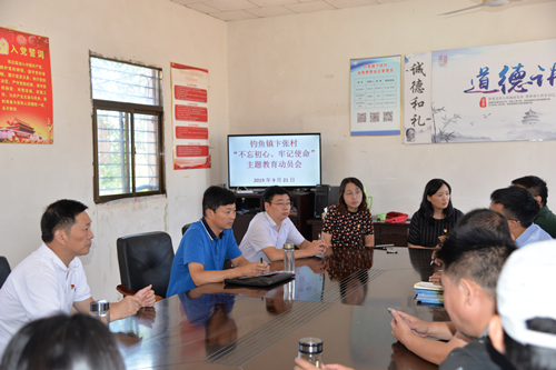 在钓鱼镇卞张村,党员干部分别进村入户,走访慰问困难群众,了解群众所需所盼,并村干部展开交流,对走访中了解的情况进行分类梳理,帮助出谋划策,积极商讨解决措施,在贴近基层、贴近群众、贴近实际中接受深刻的使命教育、初心教育。