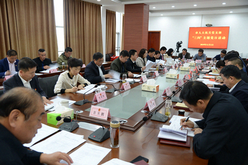 人大办主任、机关党支部书记徐文凤领学了《习近平总书记在庆祝全国人民代表大会成立60周年大会上的讲话》有关章节;党员围绕“初心是什么、使命干什么、奋斗比什么”依次交流体会,徐文凤、陆琳、刘金鹏、许宏亮、邹源、王晓鹏等几名党员作了重点发言,常委会分管领导分别进行了点评。